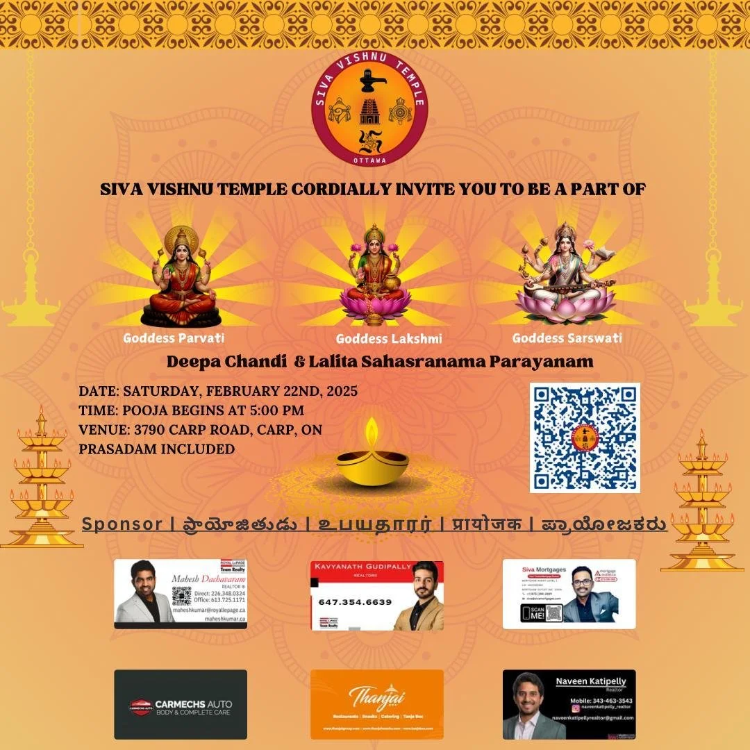 For more details, please contact admin@sivavishnutemple.com or call/WhatsApp Vignesh Guruji at 613-250-2699.